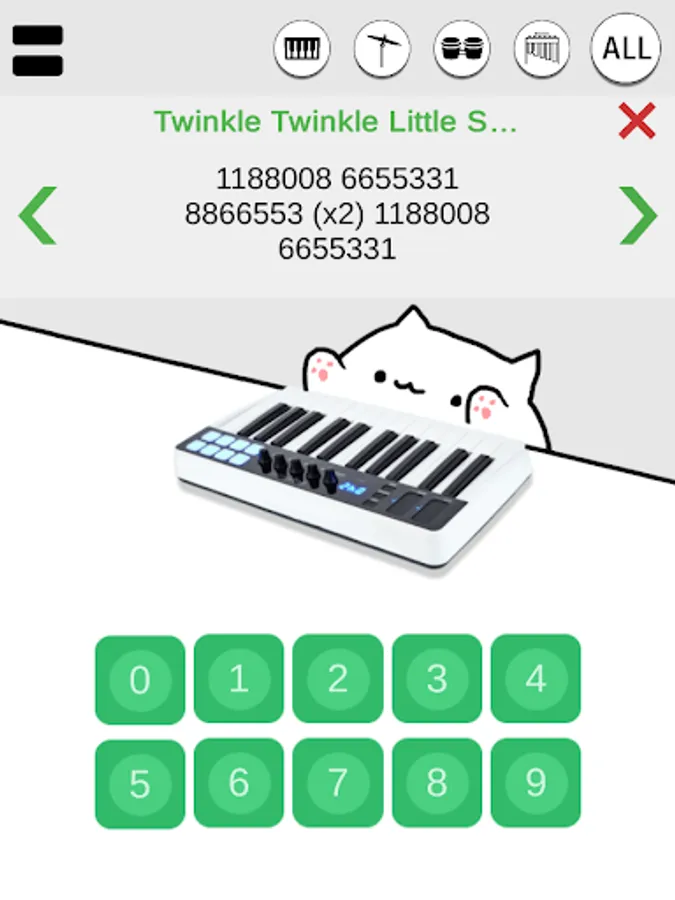 Bongo Cat All In One musical instruments is an app about a cute cat where you can play a variety of instruments like piano, marimba, keyboard, Cymbal and more you can make a song using All musical instruments.
