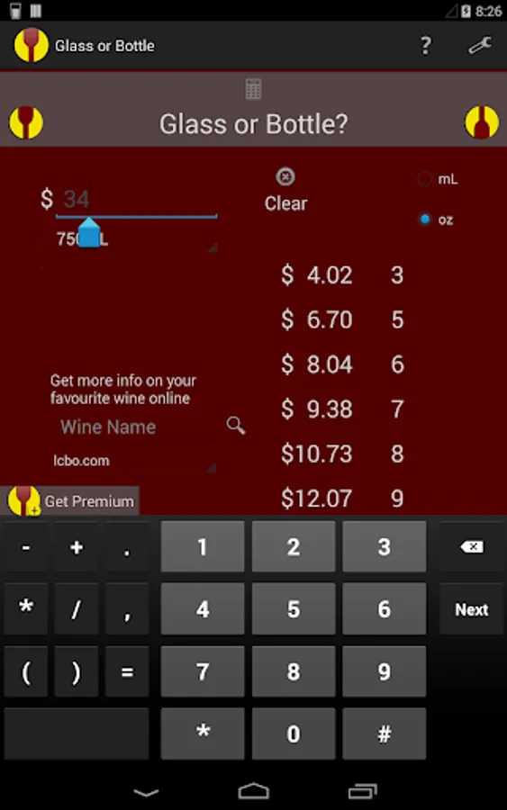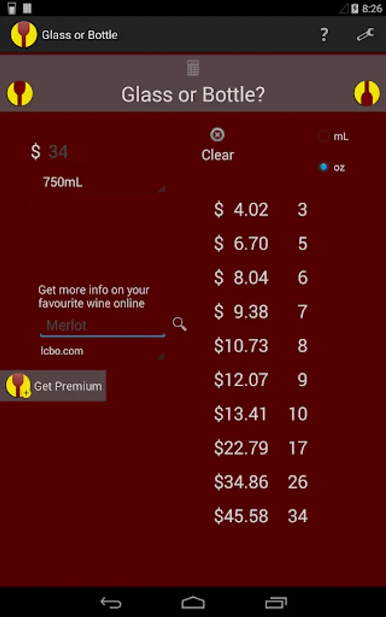 This is the only Wine Calculator available in any app store!