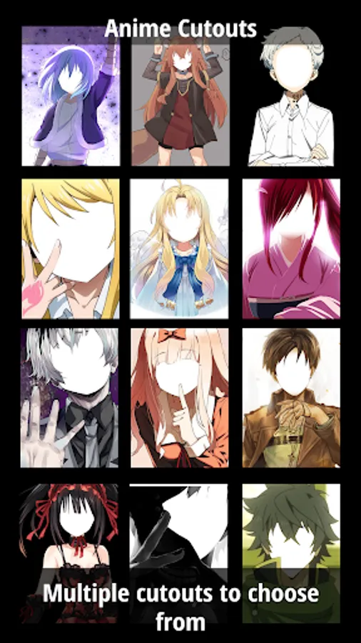 - Anime Face Cutouts - Body swap with your favorite anime characters.