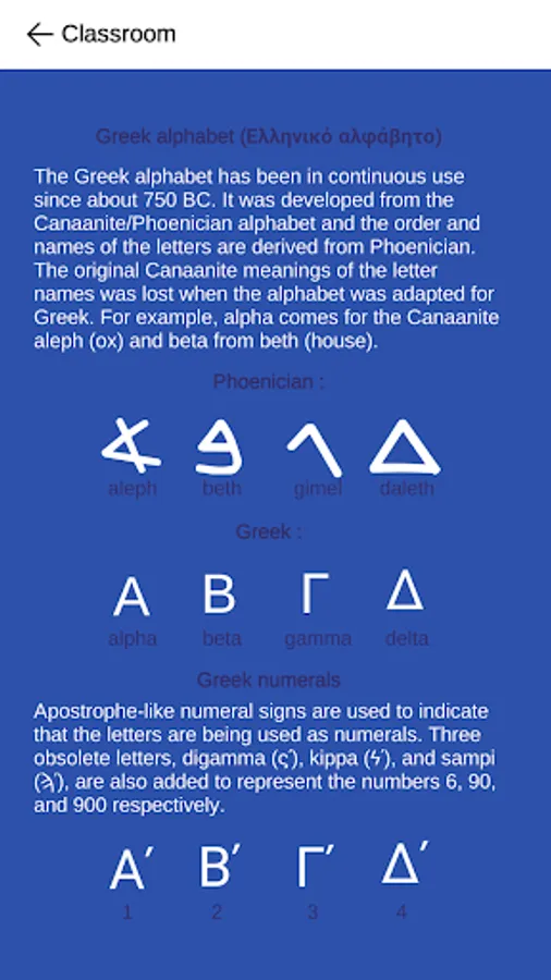 - Flashcard type of learning for faster memorization of the Greek characters