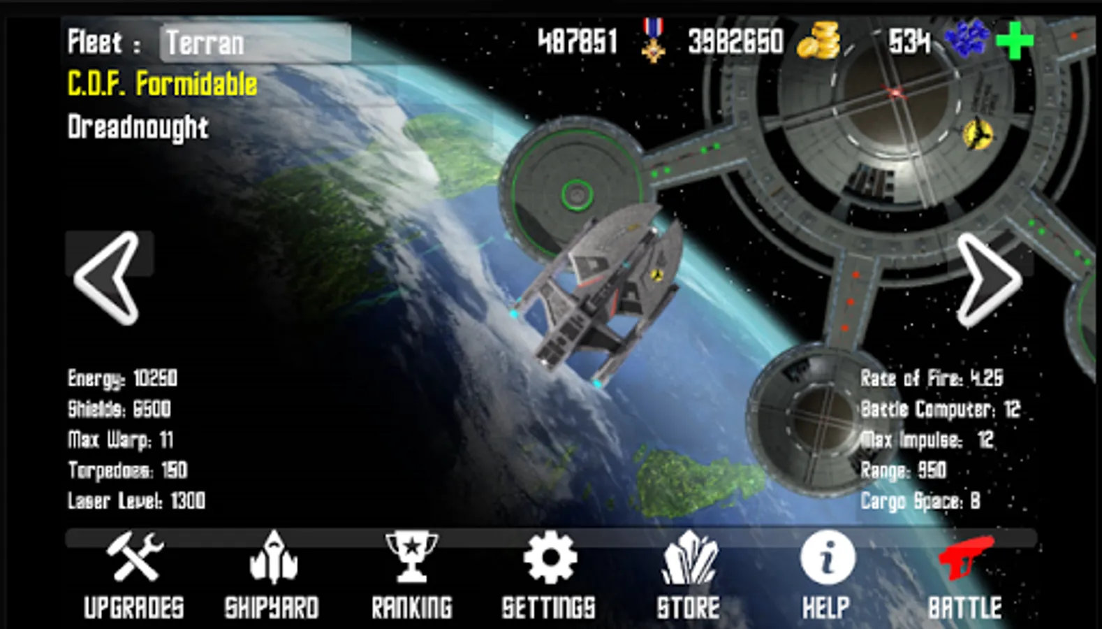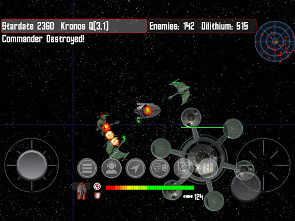 As you drive your enemy back, they will become relentless at trying to stop your progress. You will be rewarded with dilithium crystals for your victories. Mine crystals from local planets. Use these crystals to upgrade your starship. You can also purchase crystals to speed up your ship upgrades.