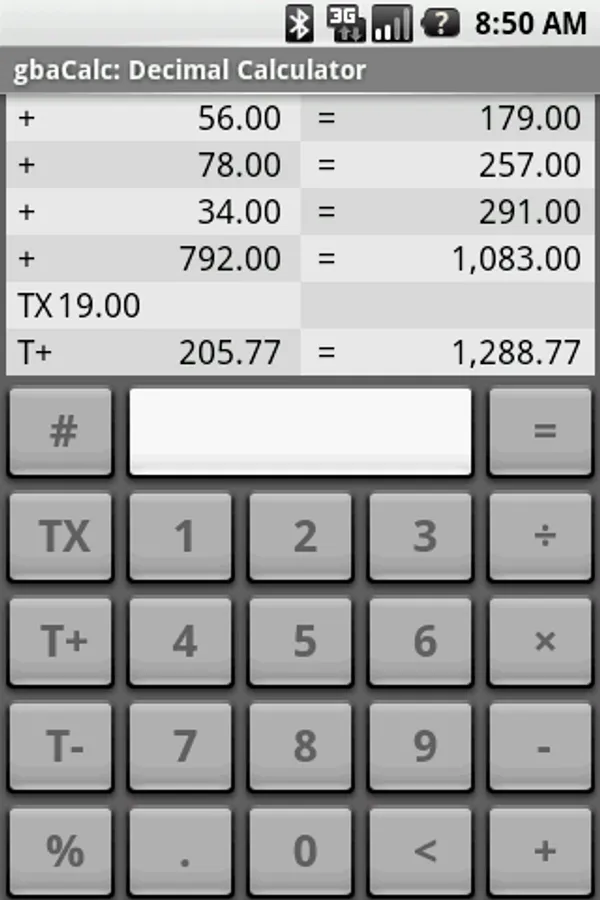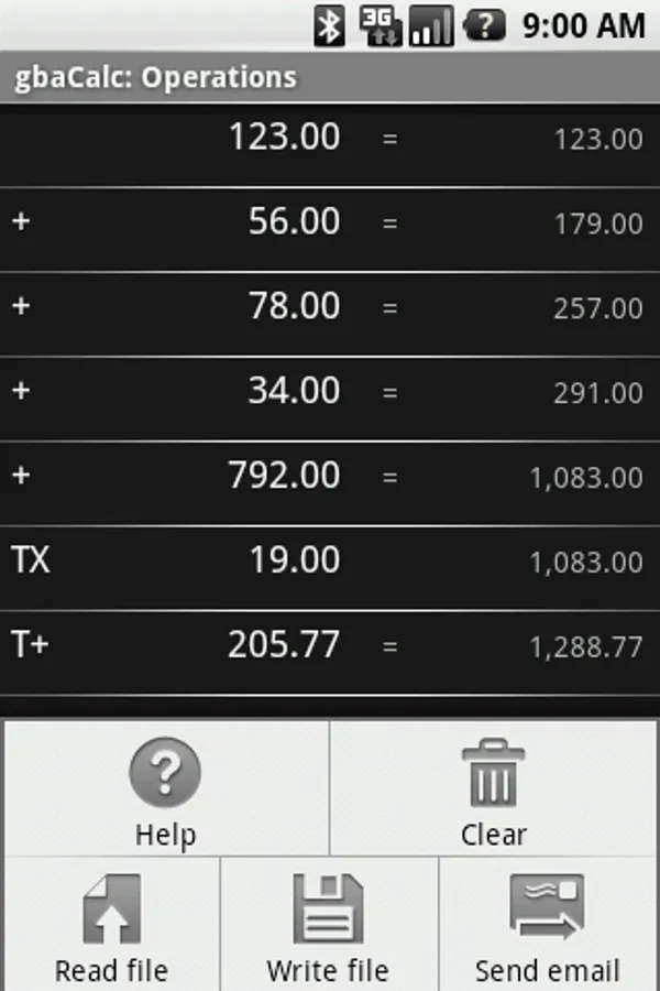 Decimal calculator inspired by printing calculators. All operations are shown in a scrolling window like on a paper roll. Decimal fixed point with rounding, percentage and tax calculations suited for commercial use. RPN-like operation mode. Operations can be edited, saved to a file or sent by email.