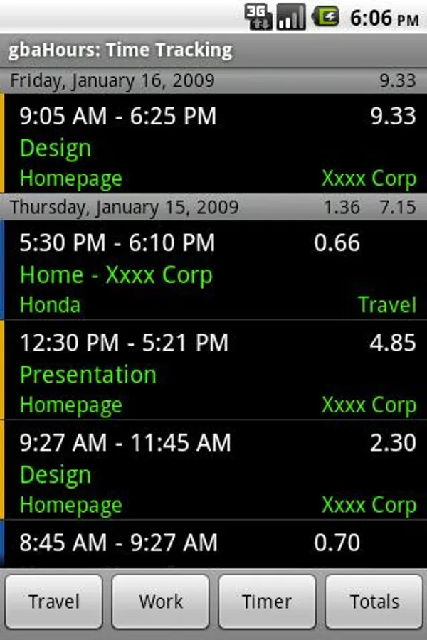 Time tracking for free-lancers that work on projects for several clients. It is easy to start and stop the tracking while you are at work and you can easily view the totals and change project or task names any time later. Totals, details and export files can be sent by email.