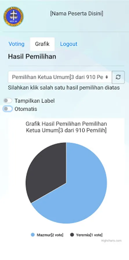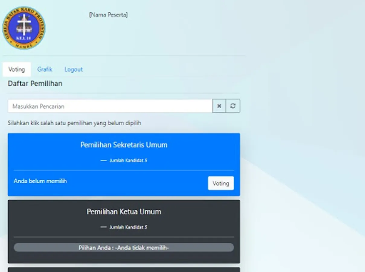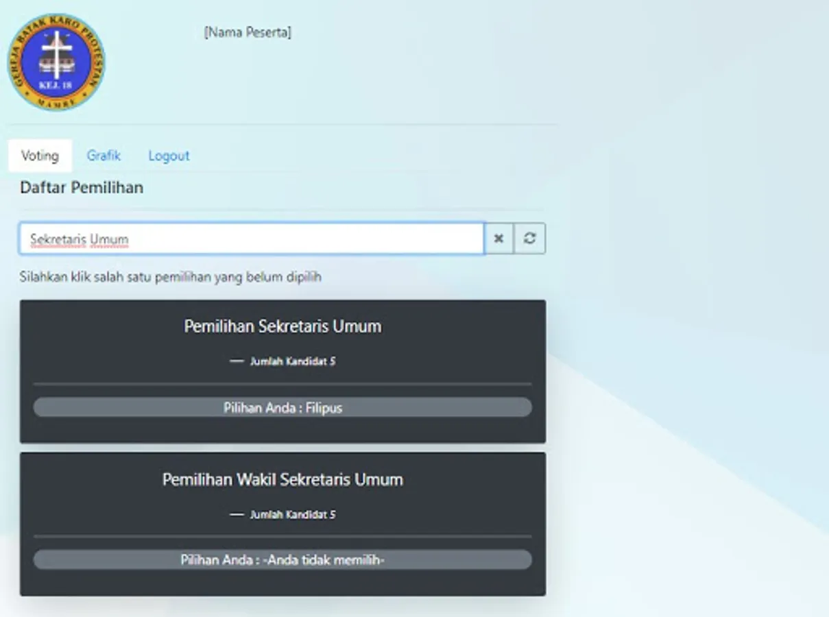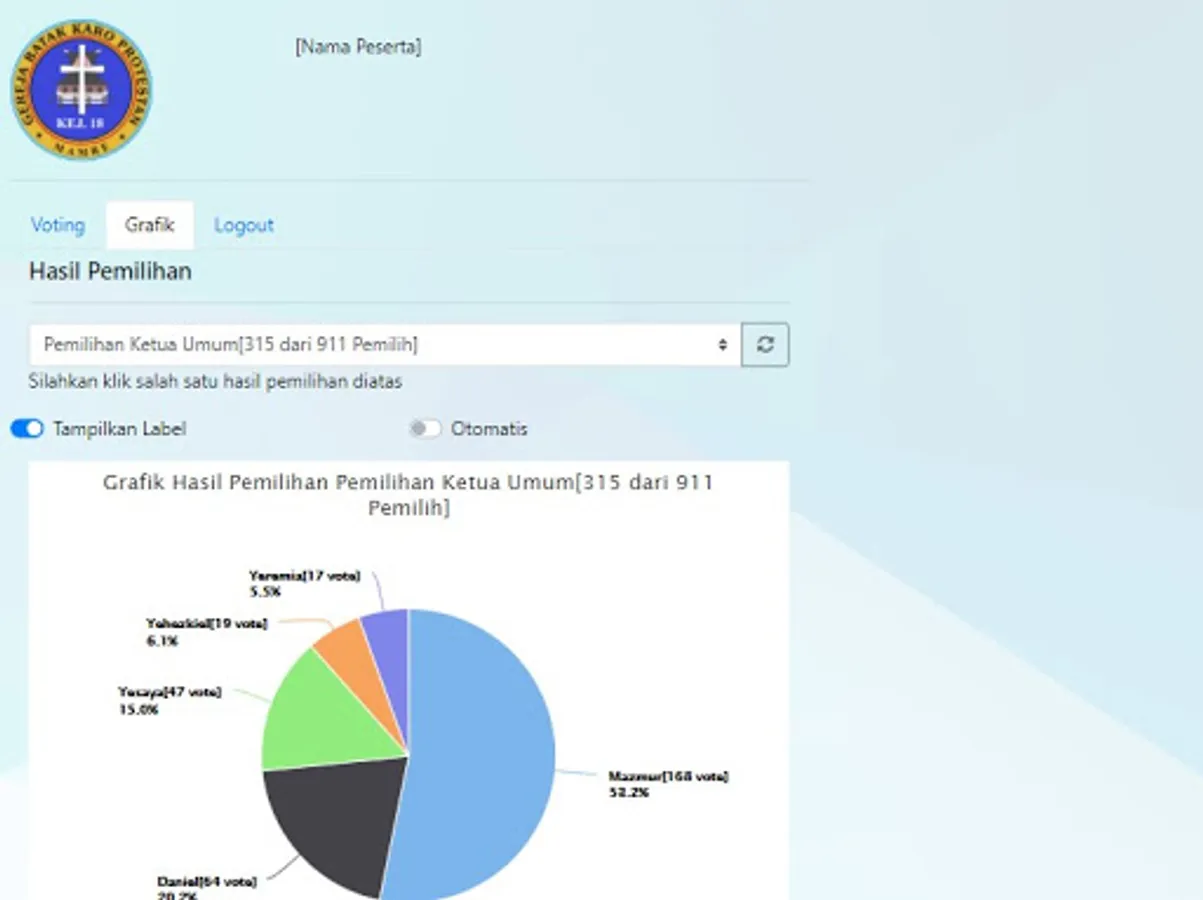 The MUPEL VI MAMRE E-Vote application is an application that is used to vote in real time on the MUPEL VI MAMRE GBKP. Voting was conducted at the same time with more than 800 participants.