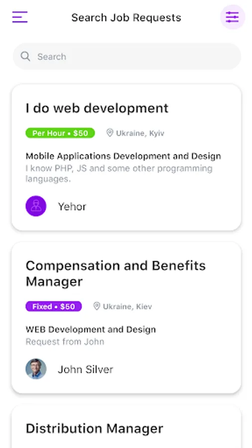 - Advanced search with filters (select the desired country, city, job type, rate type and range);