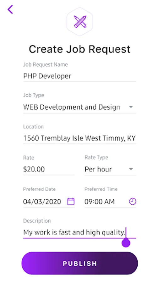 The design of the app was created with the end user in mind. It combines both visually appealing and intuitive UI and a pleasant UX. There is no need to complicate the search of job requests or vendors! Your app is a part of your brand, it creates its uniqueness. And to achieve this goal we can select a suitable custom color scheme able to highlight your particular brand and make it recognized.