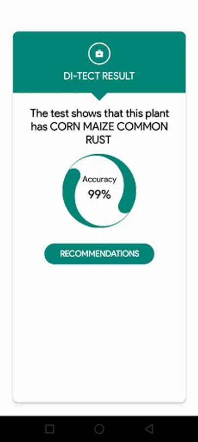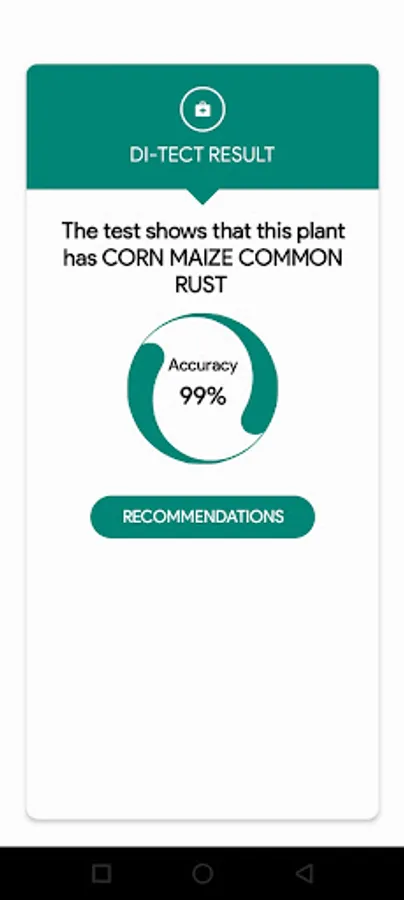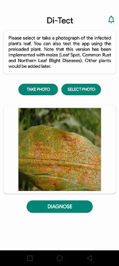 Di-Tect is an app that uses the power of artificial intelligence and machine learning to detect and diagnose plant diseases. It also provides recommendations and tips on the best ways of addressing the diagnosed disease. Farmers can use the app by uploading a photo of an affected crop, which is then scanned for symptoms of diseases using our high-quality image-recognition technology.