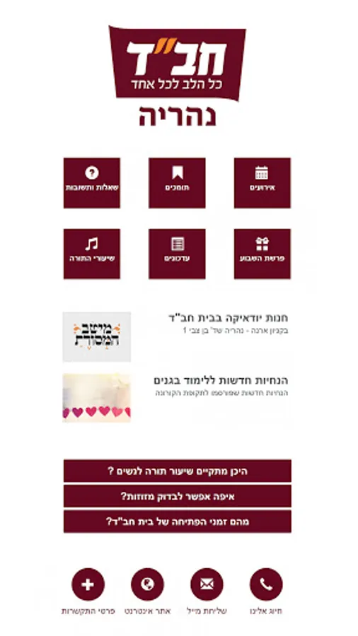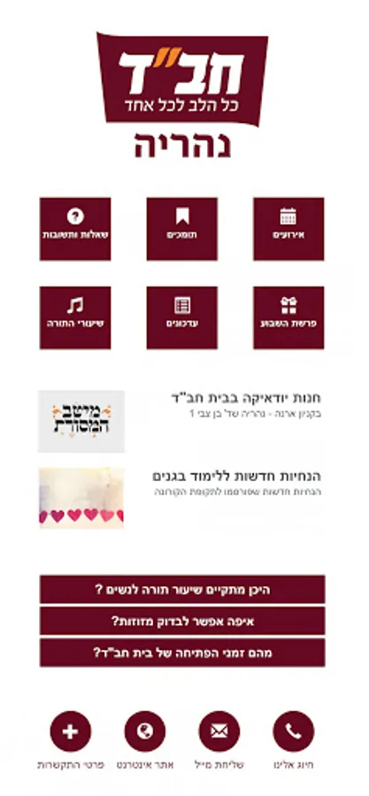 The application coordinates the current activities in the various branches that exist in the Chabad House in Nahariya.