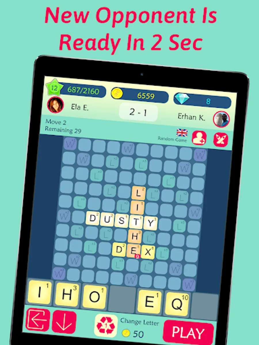 In Wordmatic you compete with your opponents on single move basis, not depending the whole board score.
