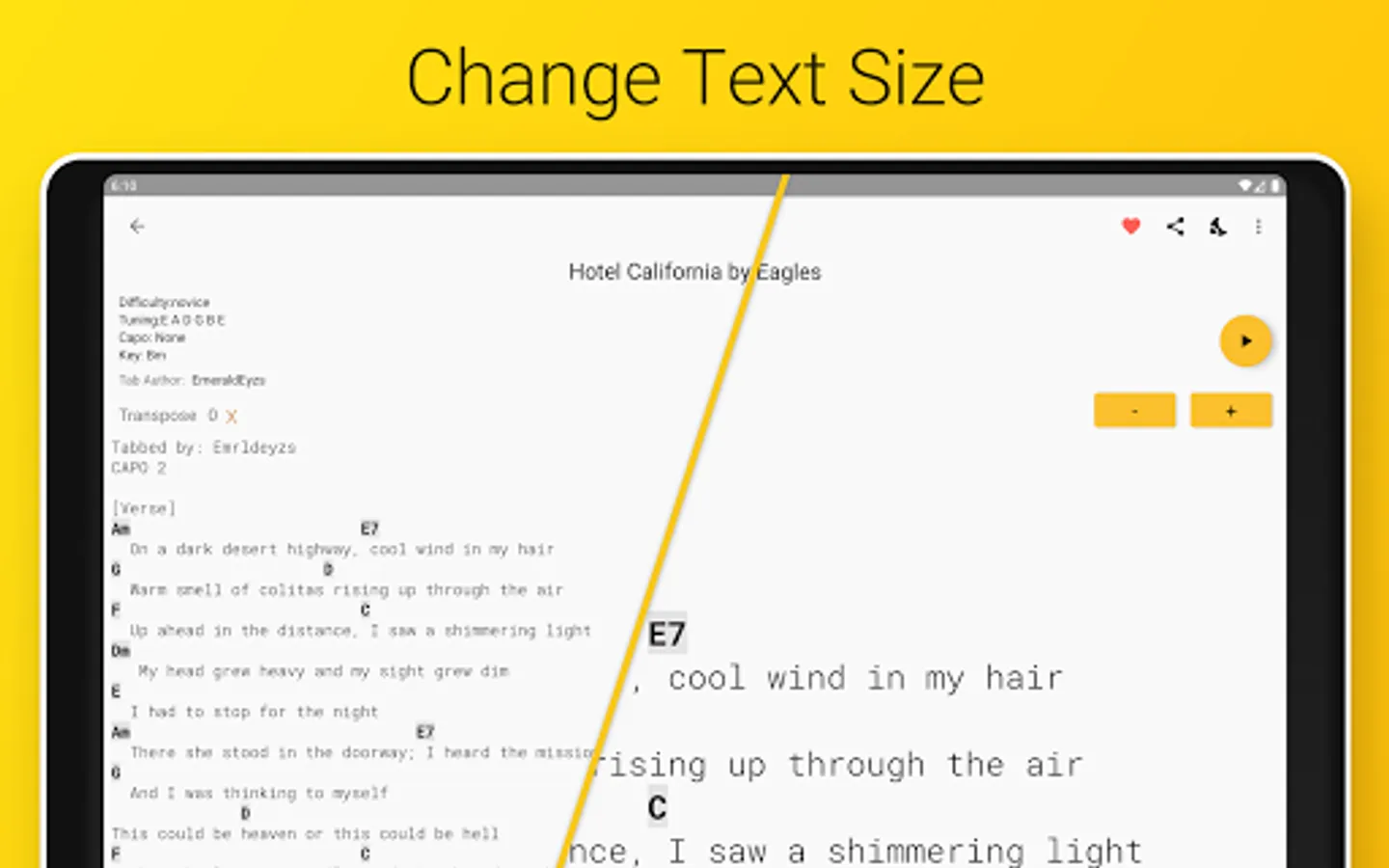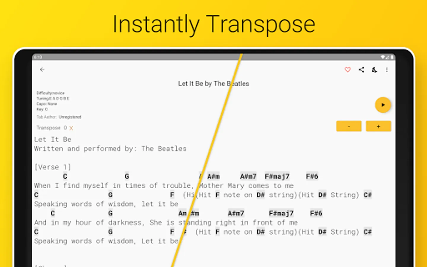Find your favorites among over a million available community driven chords and tabs! Play along at your own speed with built-in auto scroll and speed adjustment.