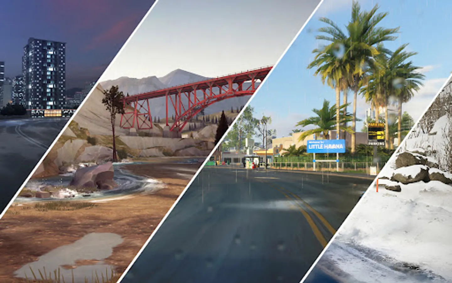 - 6 Different kinds of game modes ( Sunny, Rainy, City, Night, desert, and snow)
