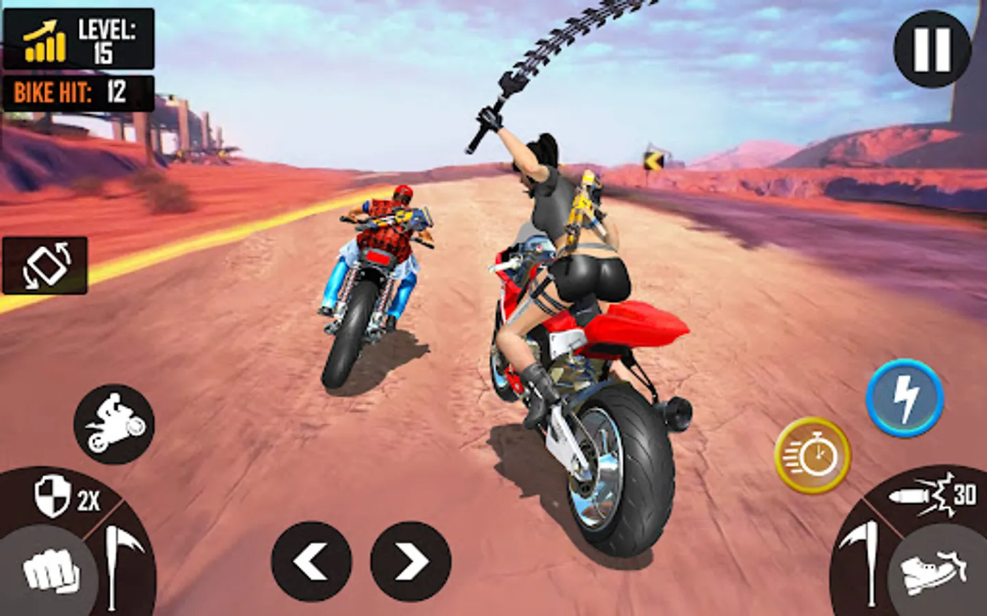 Bike simulator - Bike Race game has multiple weapons to fighting with other bike racer player. Motercycle race stunt game has different guns, sword, kick, punches, baseball bats and bikes is here for you to enjoy the game thrill and pleasent experiance. The bike rider waiting for you! just came and accept their challenge and began the race by bhoom bhoom speedy bikes.