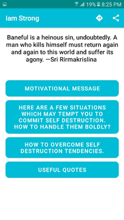 I am Strong To Overcome Self Destruction Mind app has some useful information, which will motivate them to change their decision.