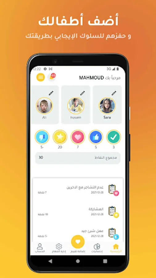 تطبيق مساعد لتحفيز السلوكيات الايجابيه للأطفال عن طريق جمع النقاط بإشراف الوالدين أو المدارس