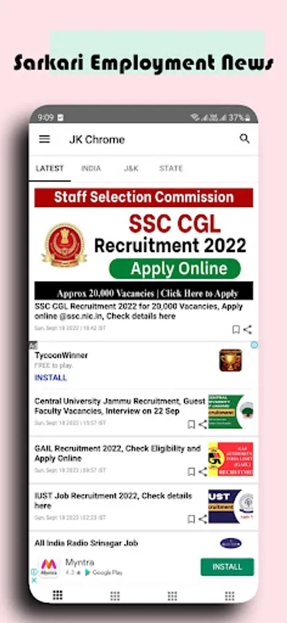 JK Chrome, an Education/Employment Portal brings you the "JK Chrome" app that lists all the latest Sarkari Jobs, Private Jobs, Education News, Scholarship Alerts, Study Material and more.
