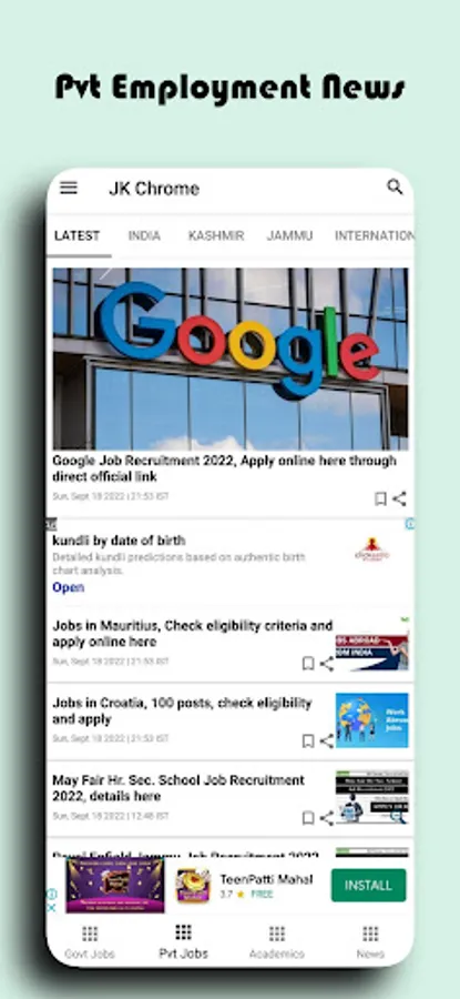 2. Private Jobs: The app lists all the latest Private Job openings from across the country.