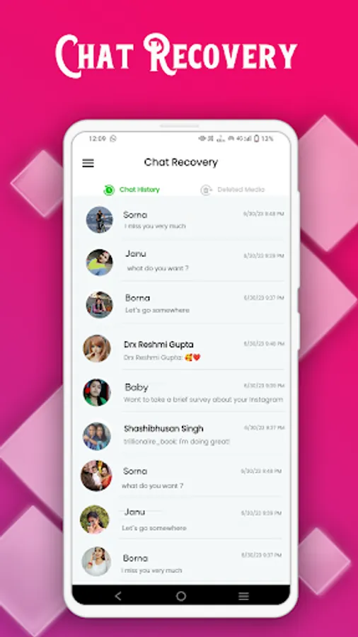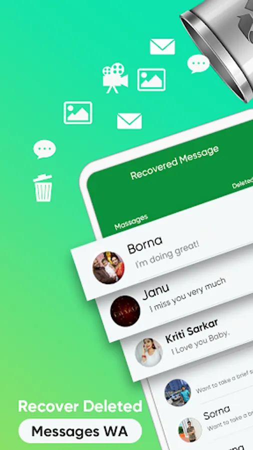 Recover Chat of Whatsapp - Recover deleted messages by scanning device notifications. View Deleted Messages from your whatsapp chat. Recover deleted media files likes audios, pictures, documents, videos and stickers. Recover deleted whatsapp messages using chat restore app.