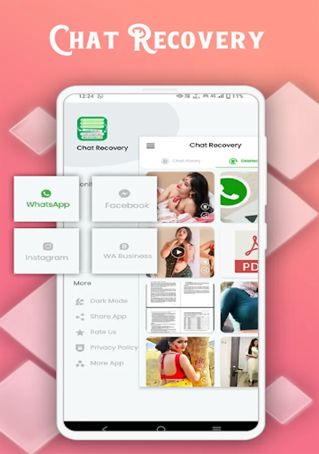 Recover Chat for Whatsapp : Chat Recovery is a free tool that allow you to recover deleted chat text messages and media for whatsapp Chat Recovery, whatsapp business Chat Recovery also for messenger & Instagram Chat Recovery.