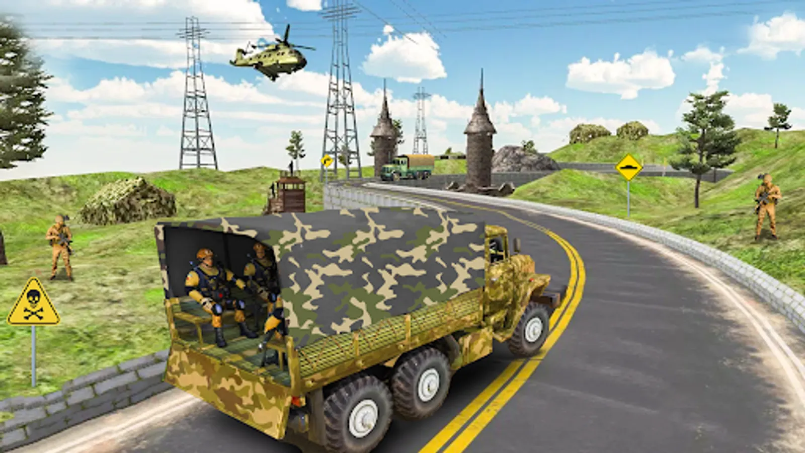 Challenging levels with tough war missions are waiting to be explored. Your area is under attack and opponent helicopters are launching missiles at you and shooting you with machine guns. Reach to your Military Base, take General and other soldiers with you safely to near base and much more inside adventure army transport simulation. It is very critical to have safe driving in battle zone, each step counts. Show vigilance and caution when driving to be able to finish given goal on time.