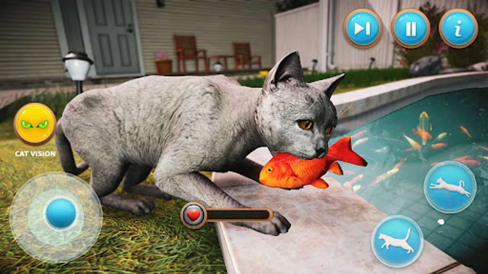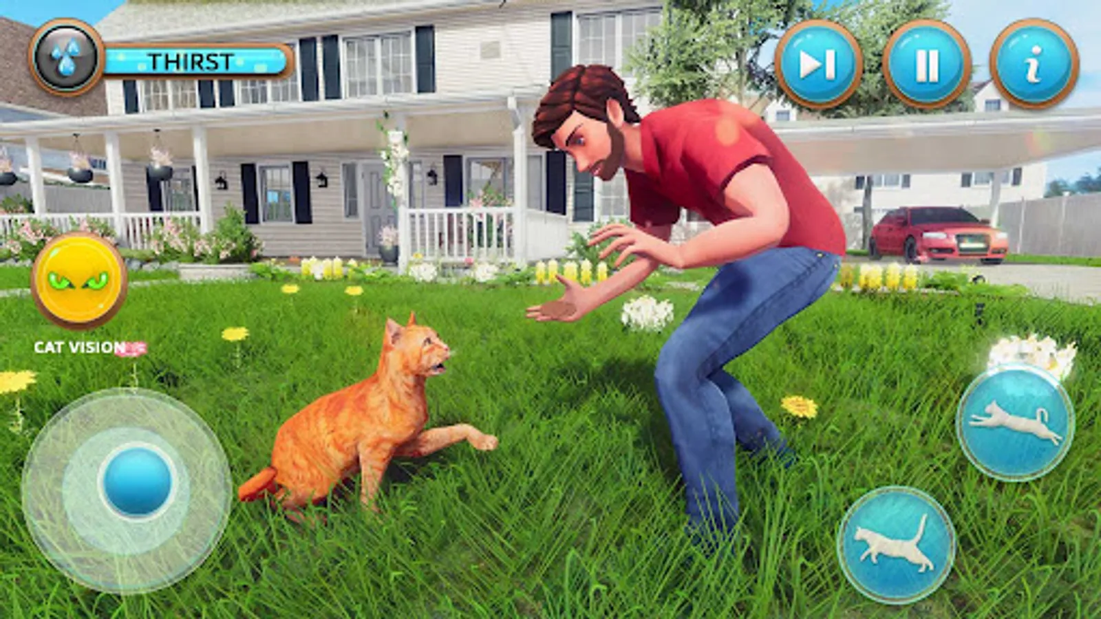 Get ready to start having fun with the virtual cat and doing multiple tasks to show your love for the pet animal in this cat games. The owner gave a cute nickname to the cat and train them well in this animal life kitty pet game. Then he will walk on the well and see a mouse which is lurking there, so go and rescue your owner and catch that rat in this virtual cat simulator game. The owner will be scared and fall down on the floor and call for help in kitten cat simulator. The little kitten found the mouse and brought it to the owner in cat and mouse simulator game. The cat kills the mouse and disposes of the dump in this pet animal shelter game. The stray cats surrounded the cute cat and mocked him, so be brave and start fight with the wild cats in this virtual cat simulator. Challenges the stray cat's leader in confrontations and win that battle in this my cat sim for all animal life game lovers. The fight between the cat and the enemy gang leader is a thrilling task to do in virtual cat simulator 3d.