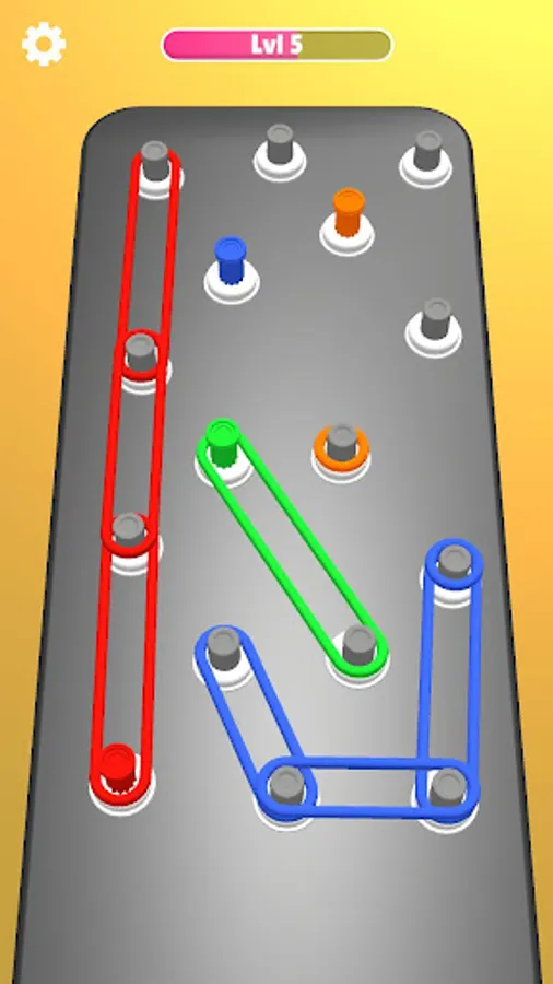 Rubber bands can be stretched to go around several pins, but they cannot cross!