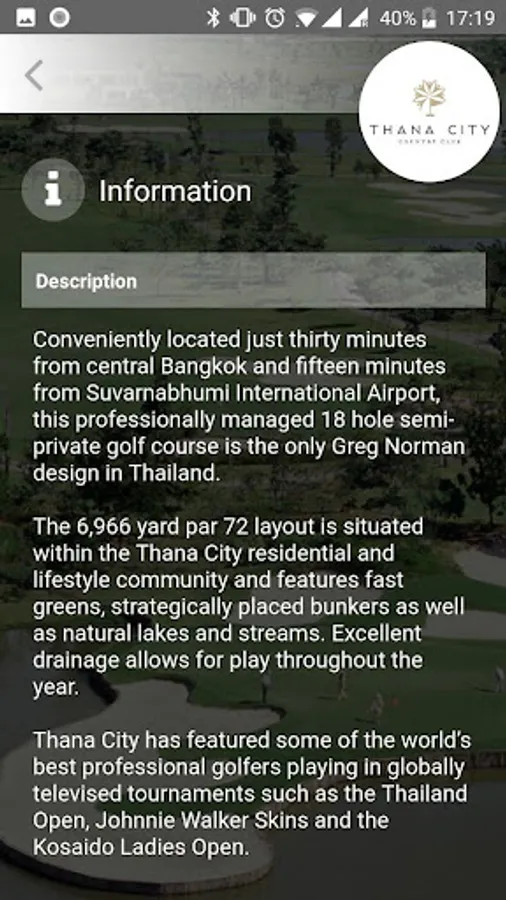 The partner app created by the GOLF CITIZEN team for the Thana City Golf and Sports Club gives anyone direct access to the golf club that includes tee time bookings at special rates, course information, location and many others.