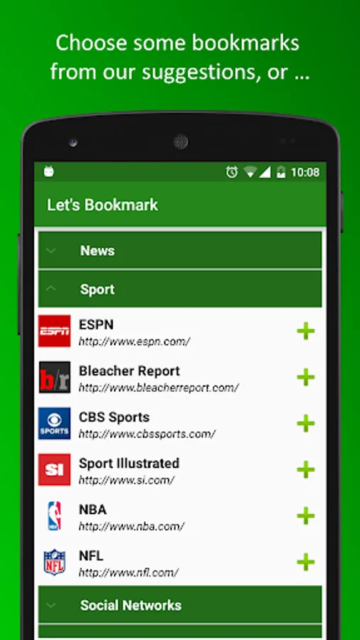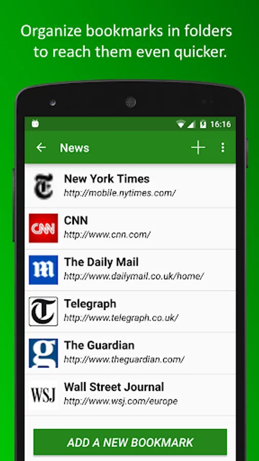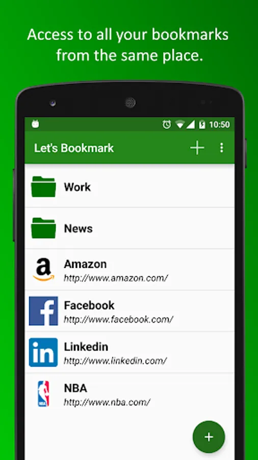 Are you tired of losing time just to open your bookmarks? Are you looking for an easy android bookmarks’ app without ads and with great functionalities? Try Let’s Bookmark! With an easy and friendly layout, it allows you to add (directly from your browser, from our suggestions or manually), manage, share your bookmarks, divide them into folders with a few clicks and open them instantly.
