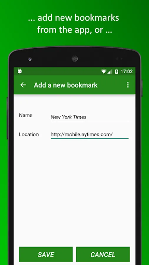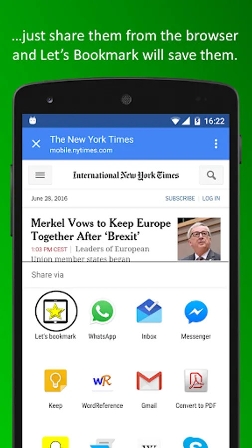 • Add new bookmarks from the browser (Chrome, Firefox, Opera and all the others)
