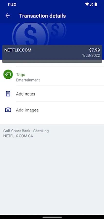 -Keep your transactions organized by allowing you to add tags, notes and photos of receipts and checks.