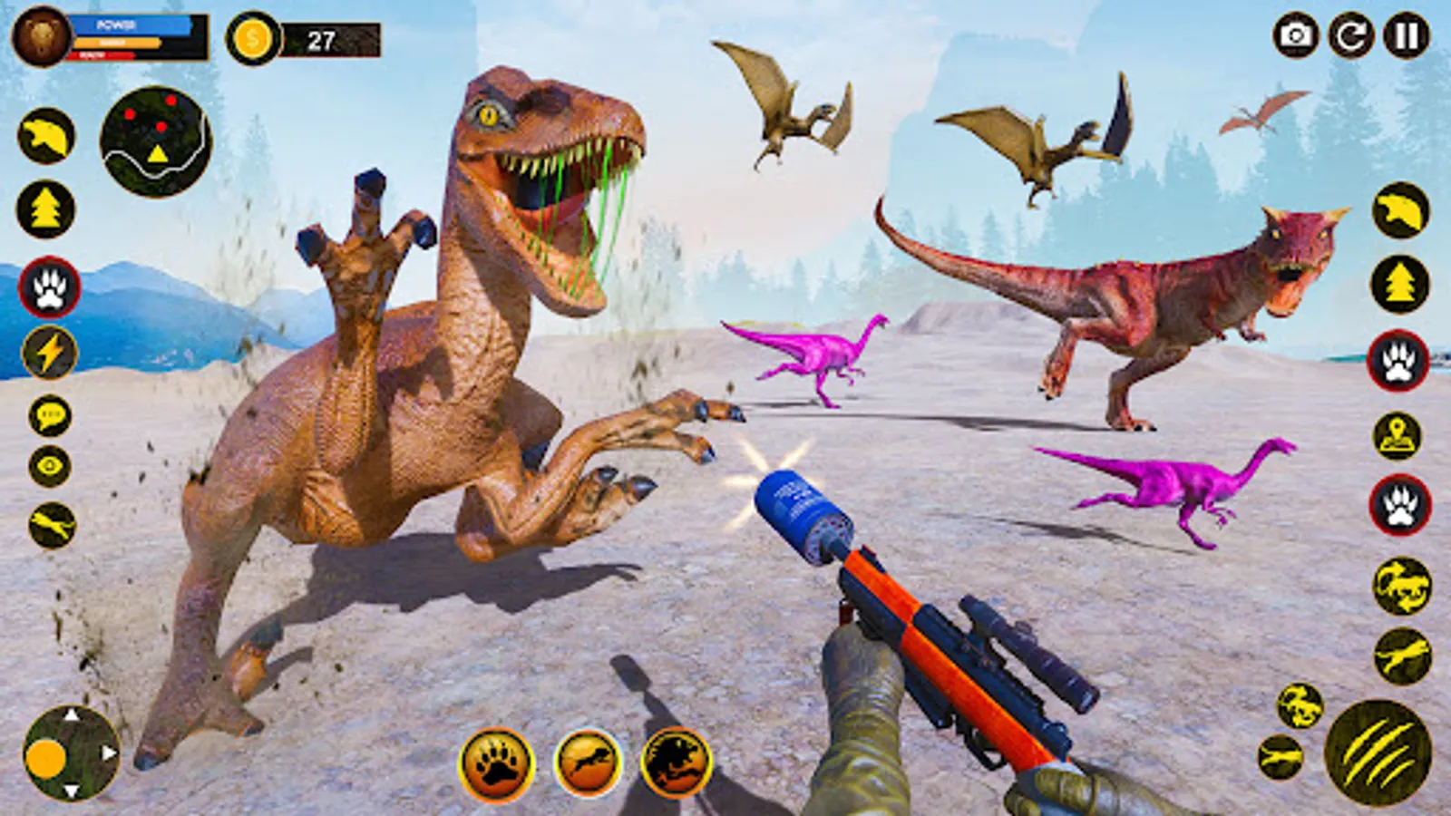 • Variety of wild dinosaurs to shoot and aim in Jurassic dinosaur shooting games 3d.