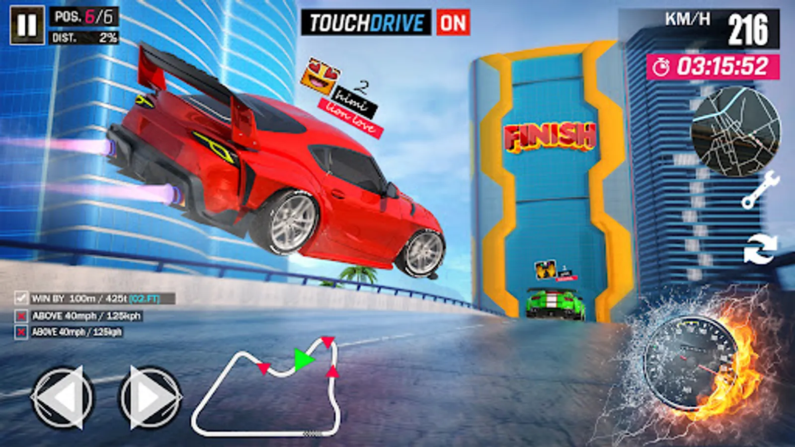 Accept the ultimate driving challenge with new heights of excitement in this ramp car stunt game to touch the checkpoints by manuring, and twisting on mini ramps. the racing car game 3D provides spinning off track as well as grinding to a thudding halt instead of the mega ramp car game 3D.
