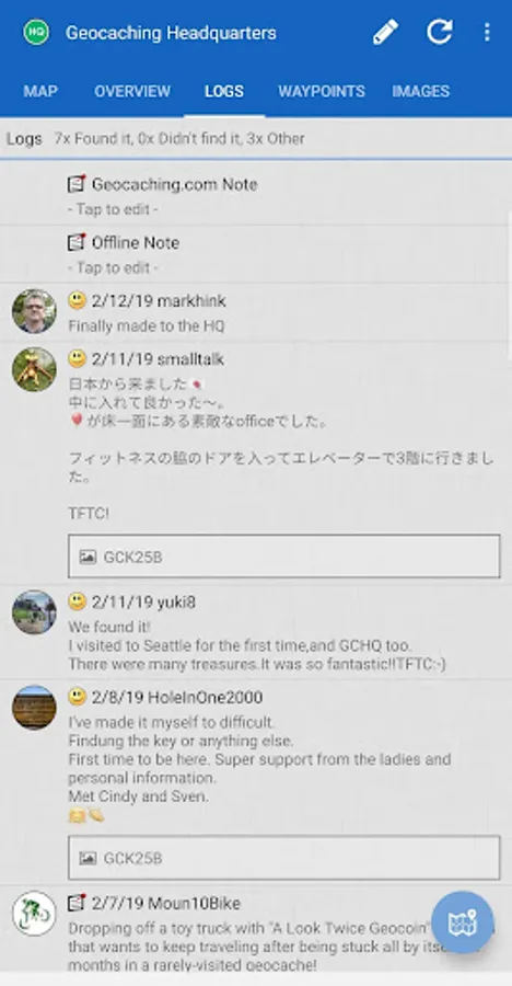 • Submit custom Fieldnote/Log (Free Version: only DNF and Found Fieldnote)