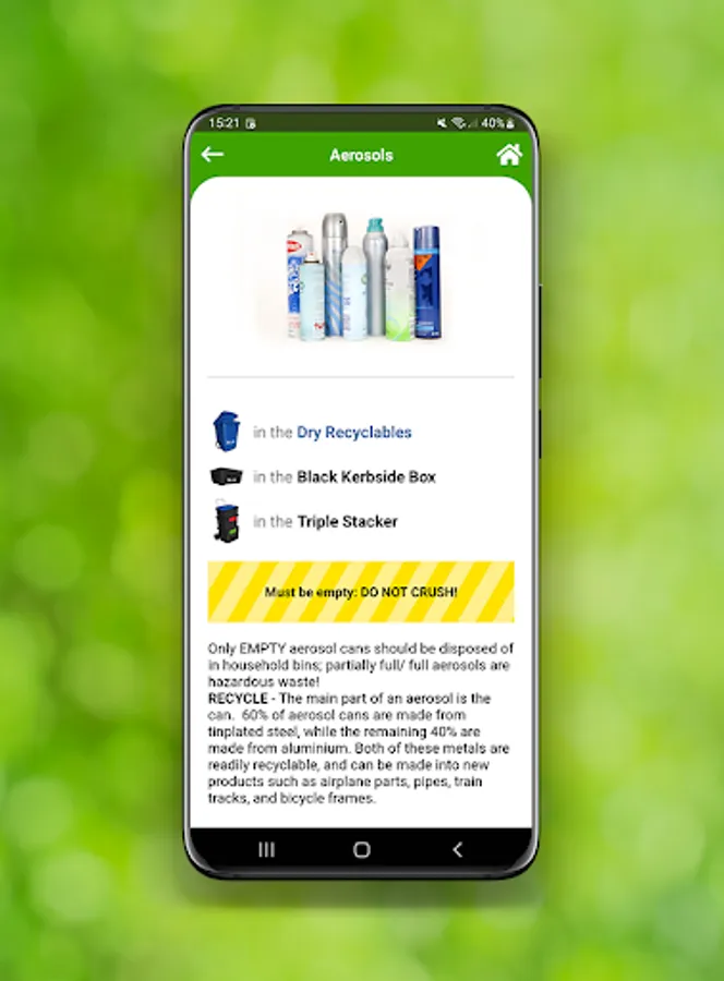 This App gives absolute clarity on how all household waste items should be treated in your council area using photos, icons and council specific instructions.