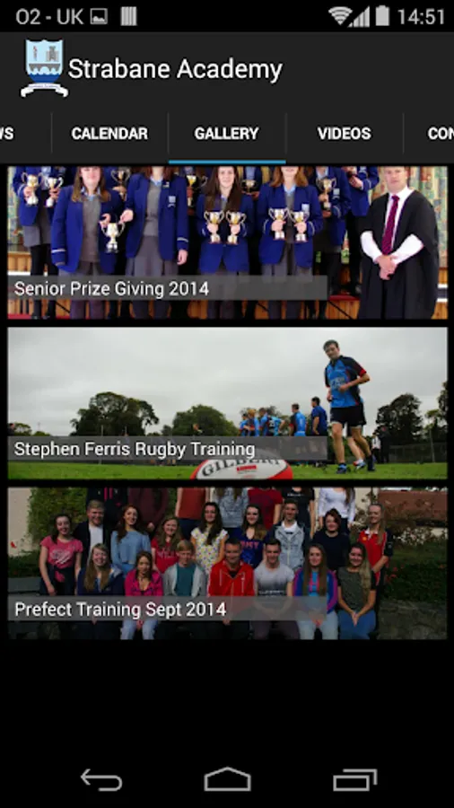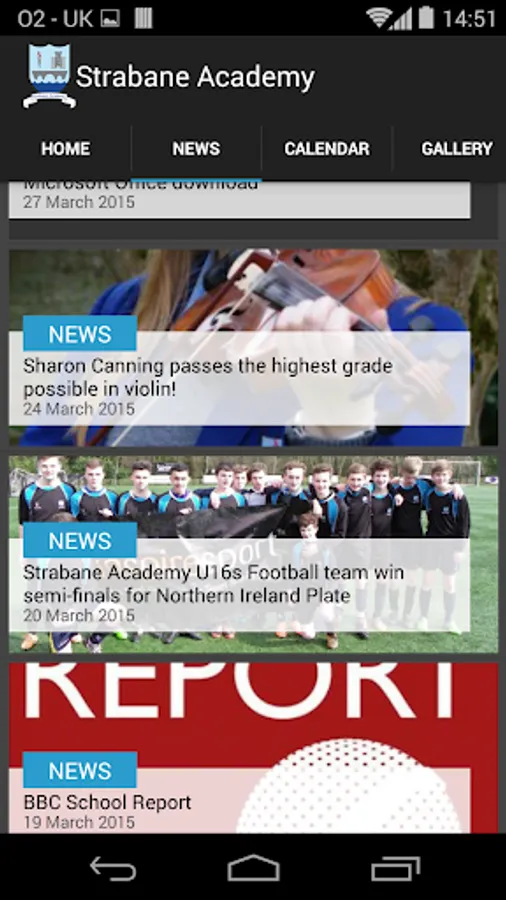 The Strabane Academy App will automatically update with News, Calendar Events and Photo and Video Galleries. The app will also receive push notification alerts from the school relating to school events, exception closures or other important information for parents.