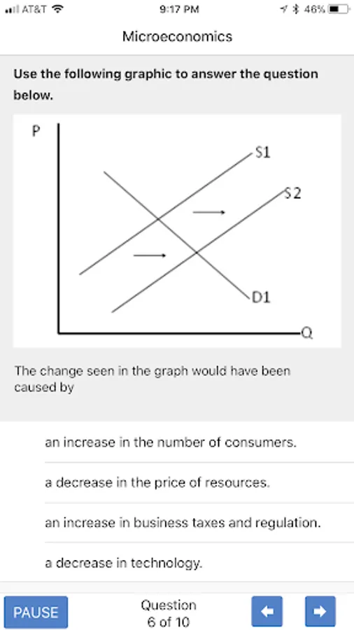 The app includes a variety of question types including analysis of readings, graphs, data charts, and questions that require students to synthesize the effects of a change on multiple variables. The questions are tightly aligned with the Georgia Standards of Excellence for Economics and reflect the types of questions students are likely to see on the Economics End of Course Test.