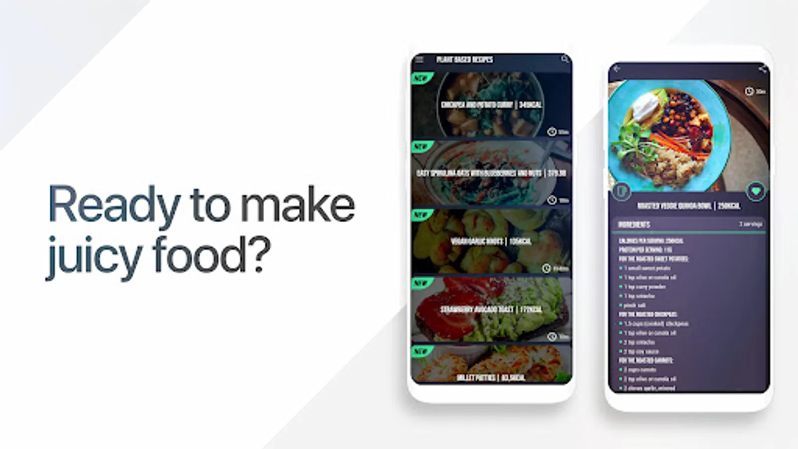 Whether you're a vegetarian or a vegan, you will want only the best vegan recipes and in this app you will have access to free vegan recipes for dinner, free plant based recipes for beginners, free vegetarian recipes etc. A plant-based meal plan offers all the necessary nutrients required for optimal health. You don't have to go fully vegan or vegetarian to experience the benefits of a plant-based diet.