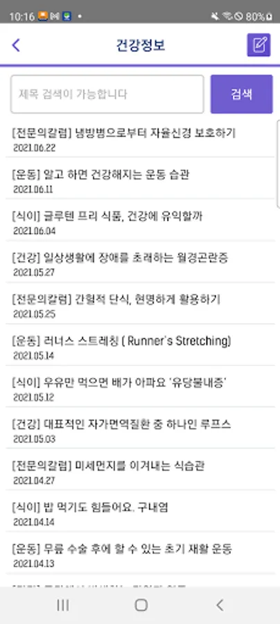 ☞ Provides health information such as exercise, diet, health, and specialist columns