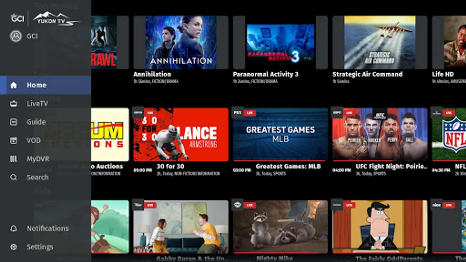 • Keep your data – Yukon TV doesn’t impact your GCI home internet plan’s data usage. Watch all you want, when you want, and never worry about data usage when you watch at home.