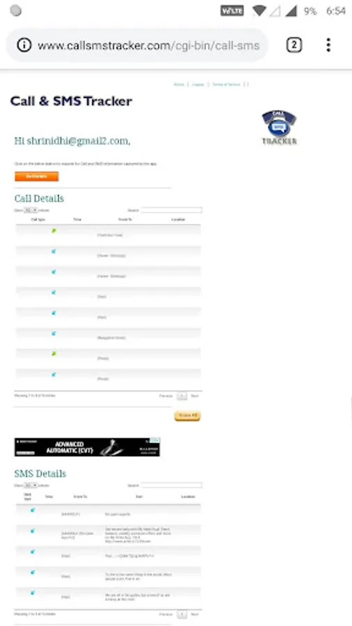 - You can see these data remotely by visiting our website and entering your Еmail ID and PIN. You need to click on 'Get Details' button to pull details from your mobile. Сall and Message details will not be pushed to server automatically.