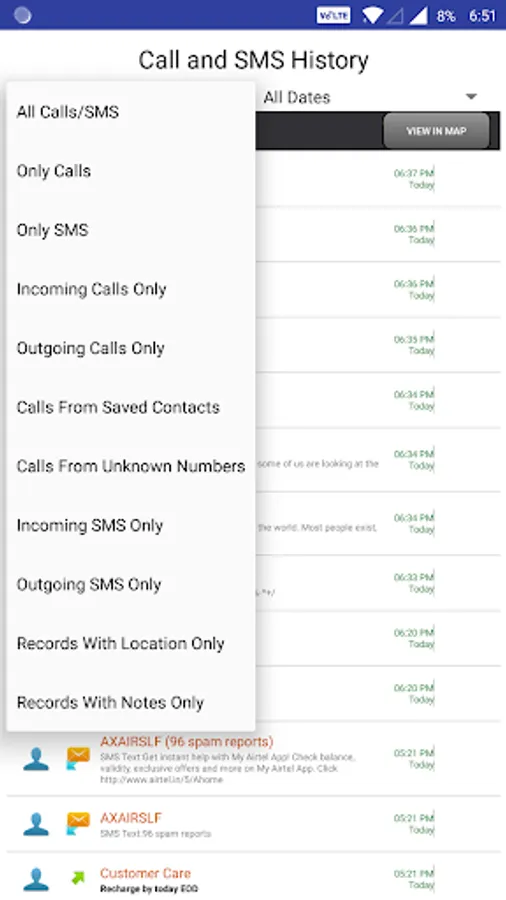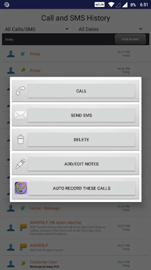 - Now whenever a call is made or received or a Message is sent or received, wait for a while and then launch the application again.