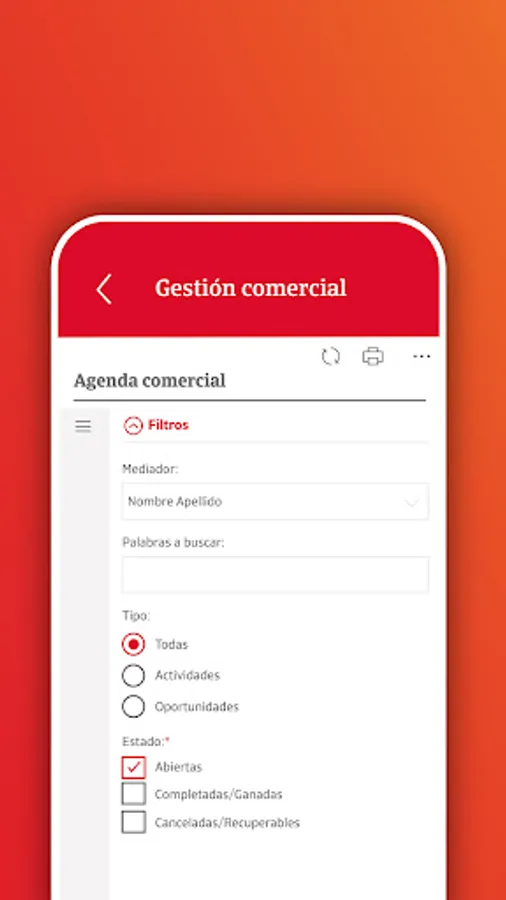 Consult your commercial agenda, add activities and opportunities and update the information of your clients.