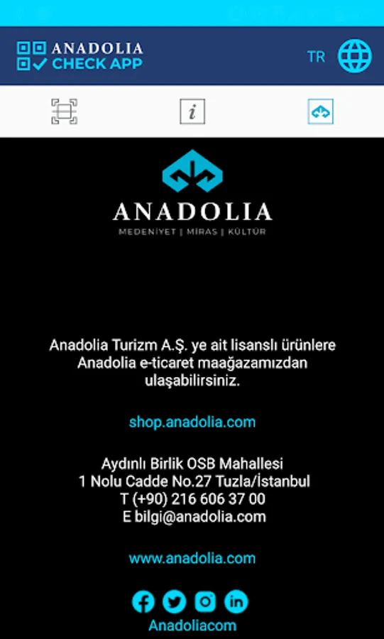 CheckApp application Anadolia Turizm A.Ş. provides license control of the products produced by
