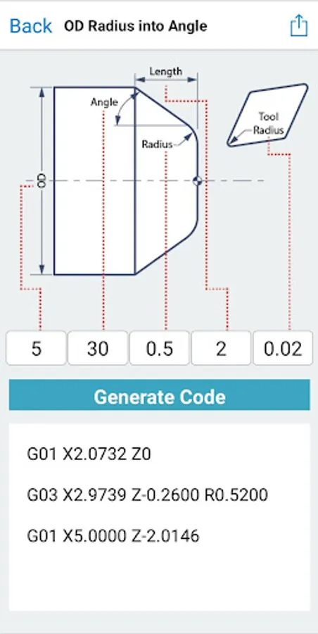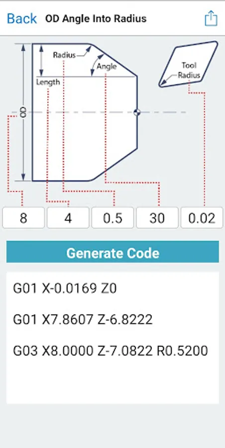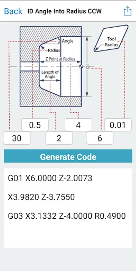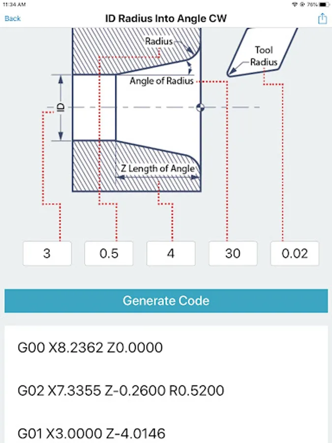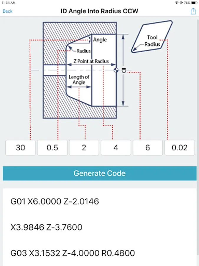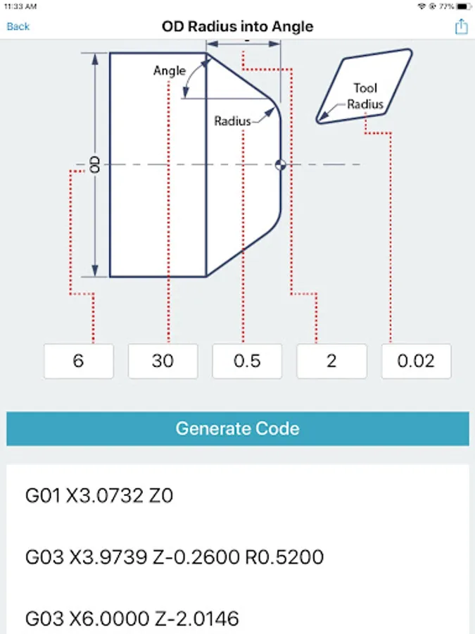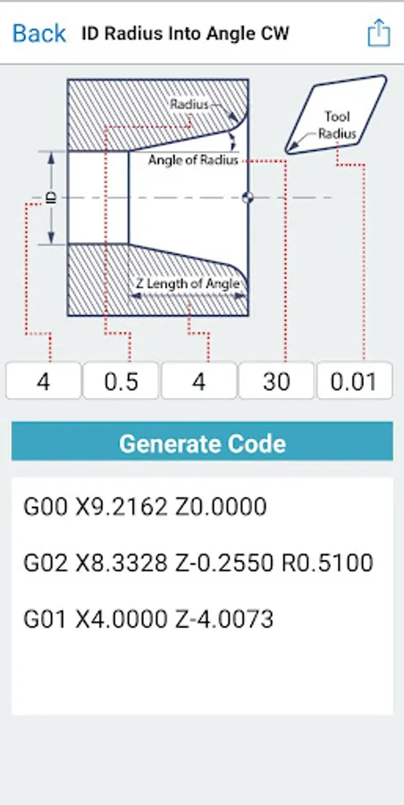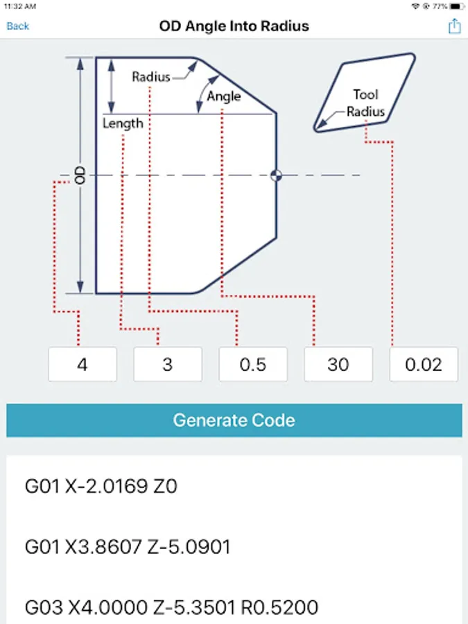 A handy tool to generate CNC G codes with just a few number inputs. It works with different OD and ID machining scenarios: