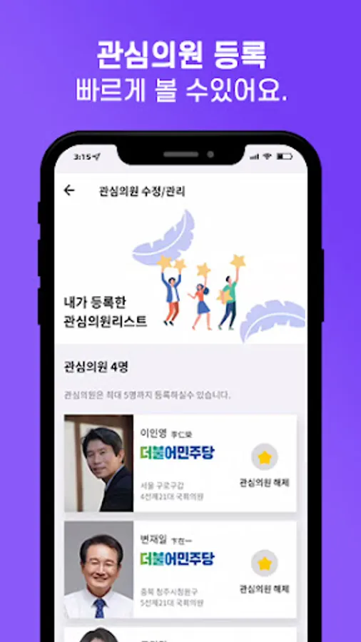 ※ Based on your address, you can designate incumbent lawmakers and lawmakers you are usually interested in to check the status of your activities.