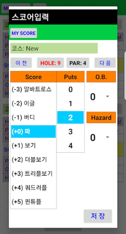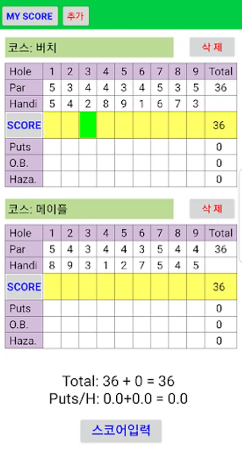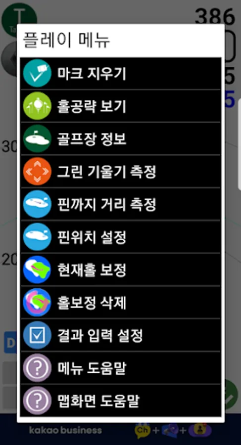 *Select/Modify Club *Scorecard/Input Score *Select Hole
