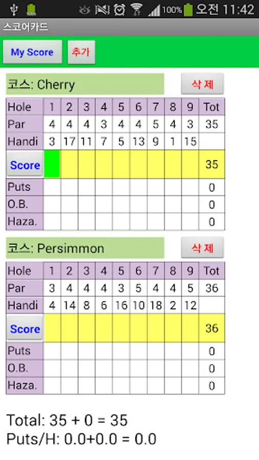 *Select/Modify Club *Scorecard/Input Score *Select Hole