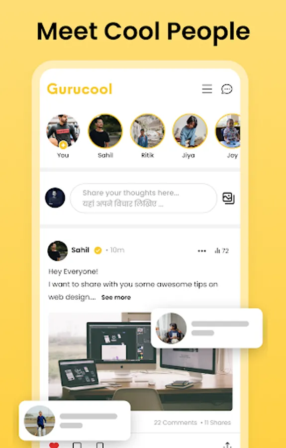 Learning with friends is cooler and easier than ever. Share updates and notes, engage with friends and Gurus, and stay connected to communities important to you.