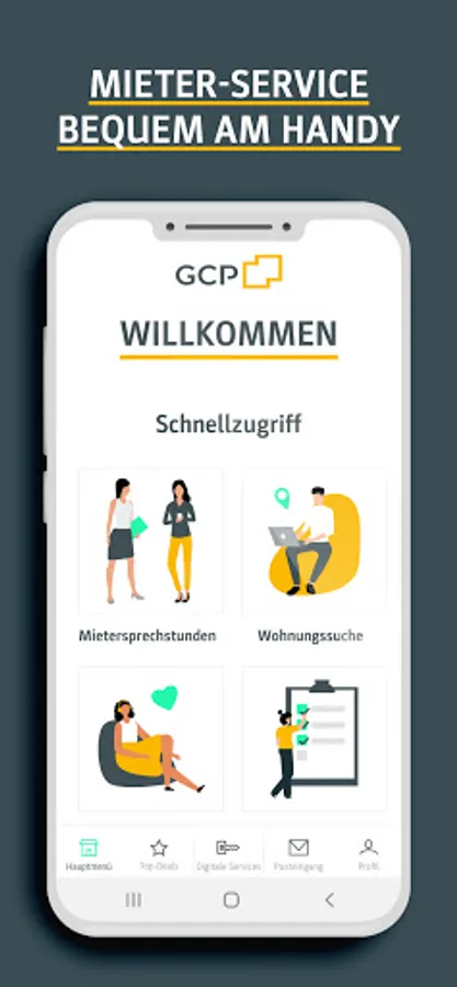Wohnungssuche, Mieter-Service, Treuepunkte und Top-Deals: Das alles gibt es in der GCP App – jetzt noch schneller und einfacher. Für alle Mieter und zukünftigen Mieter.