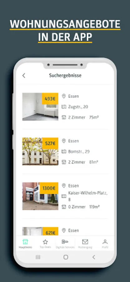 • Für Mietinteressenten: Suchen Sie Wohnungen und markieren Sie Ihre Favoriten in der App