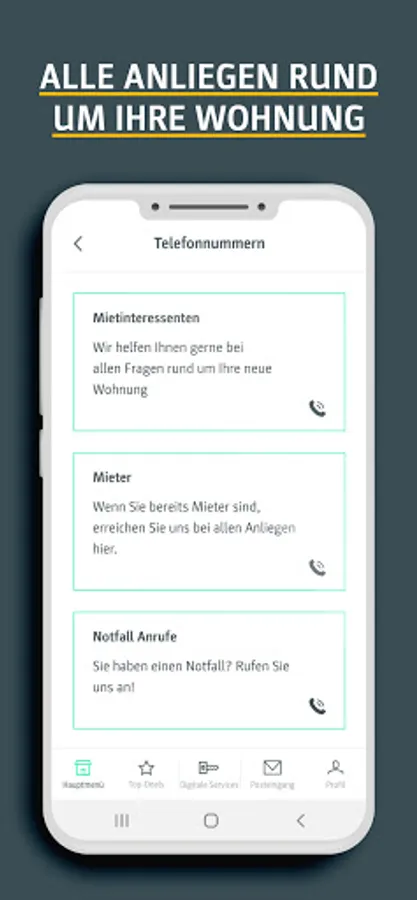 • Nutzen Sie die App, um uns zu allen Anliegen rund um Ihre Wohnung zu kontaktieren